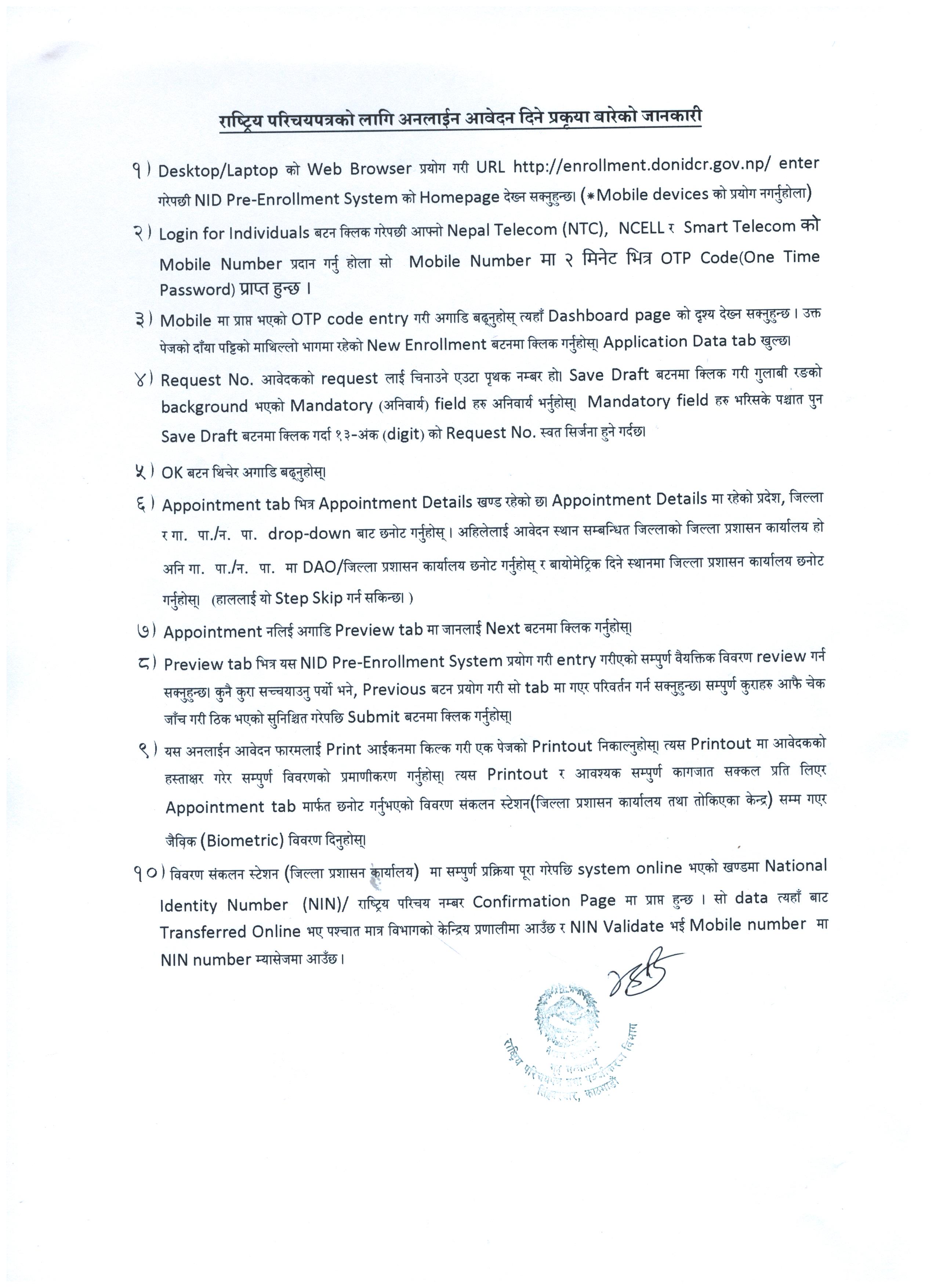 राष्ट्रिय परिचयपत्र अनलाईन आवेदन दिने प्रकृयाको जानकारी |