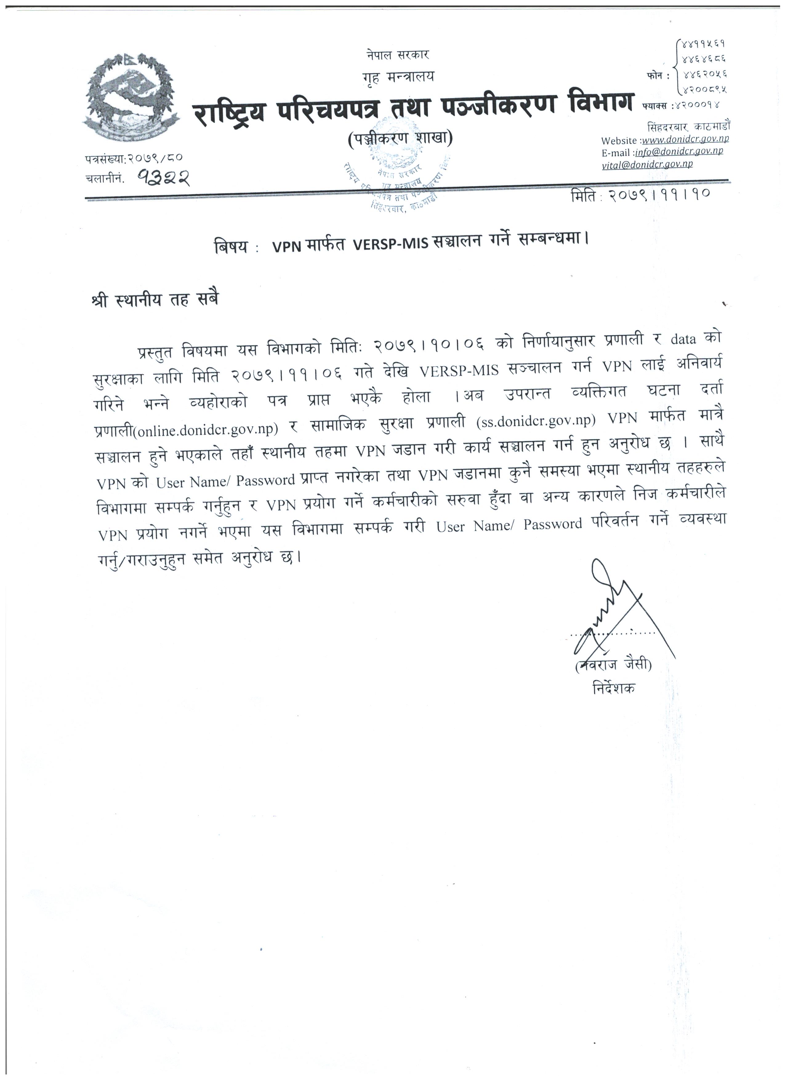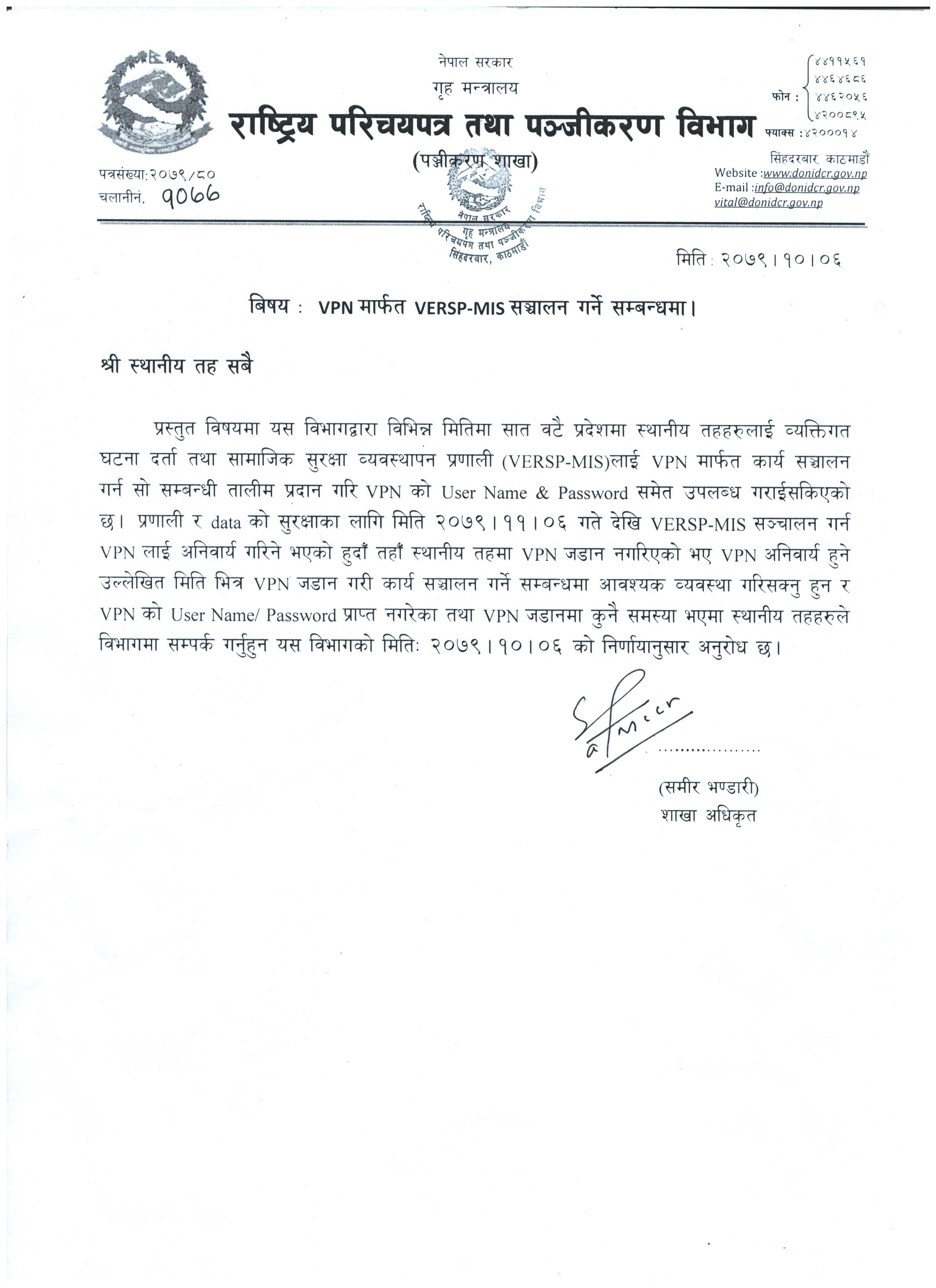 VPN मार्फत VERSP-MIS सञ्चालन गर्ने सम्बन्धमा । |