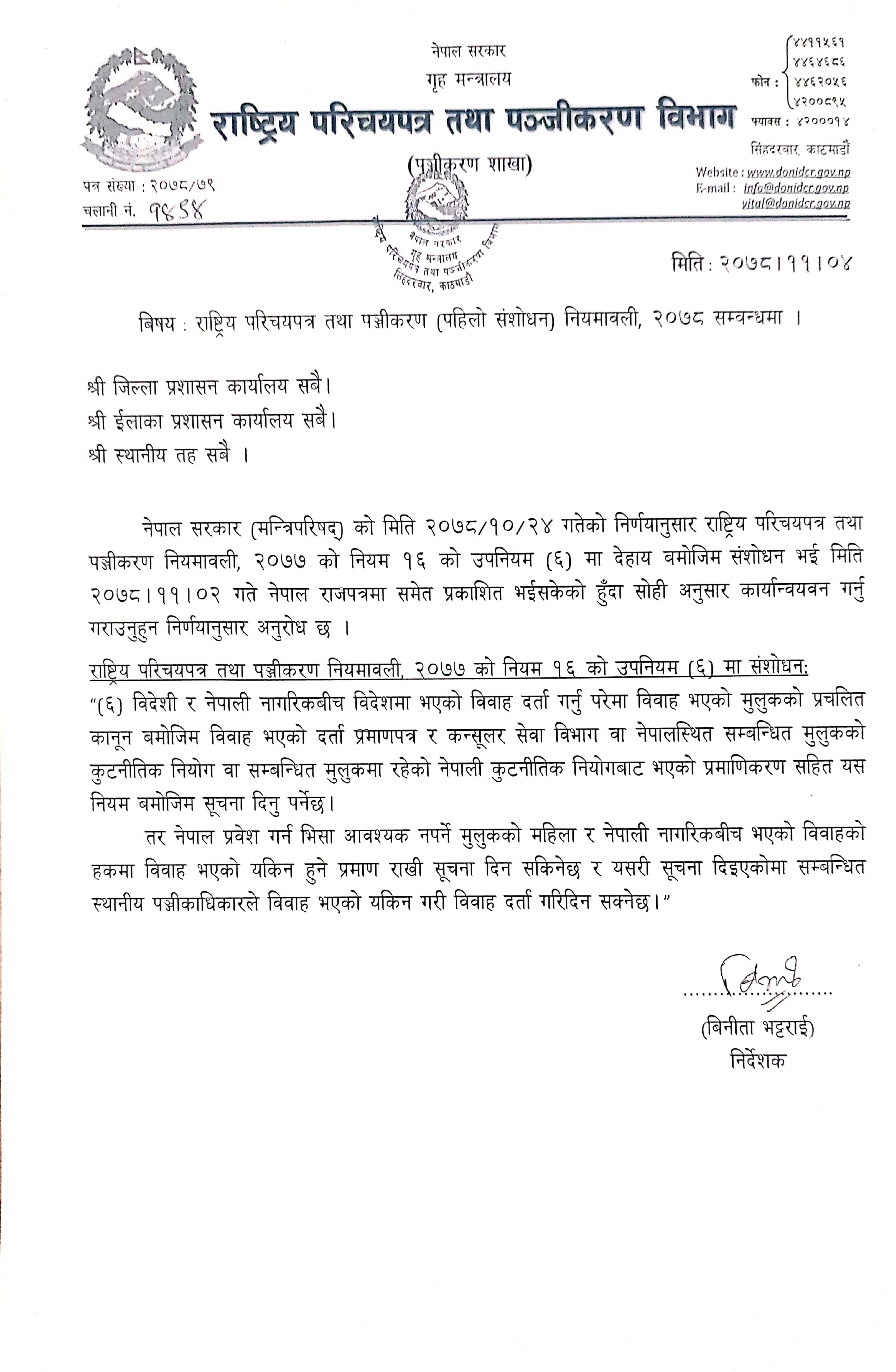 राष्ट्रिय परिचयपत्र तथा पञ्जीकरण( पहिलो संशोधन) नियमावली २०७८ |