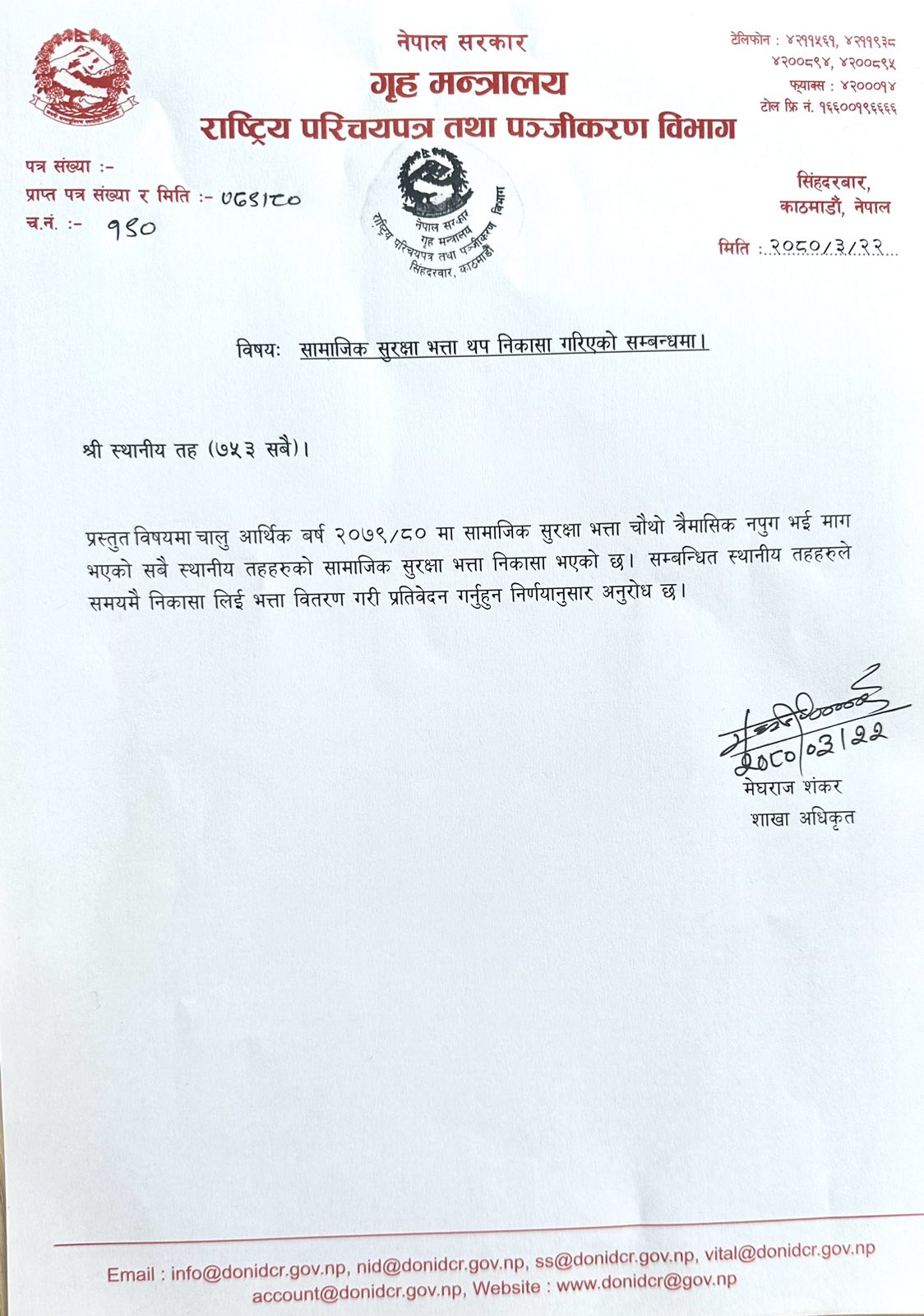 सामाजिक सुरक्षा भता नवीकरण सम्बन्धमा । |