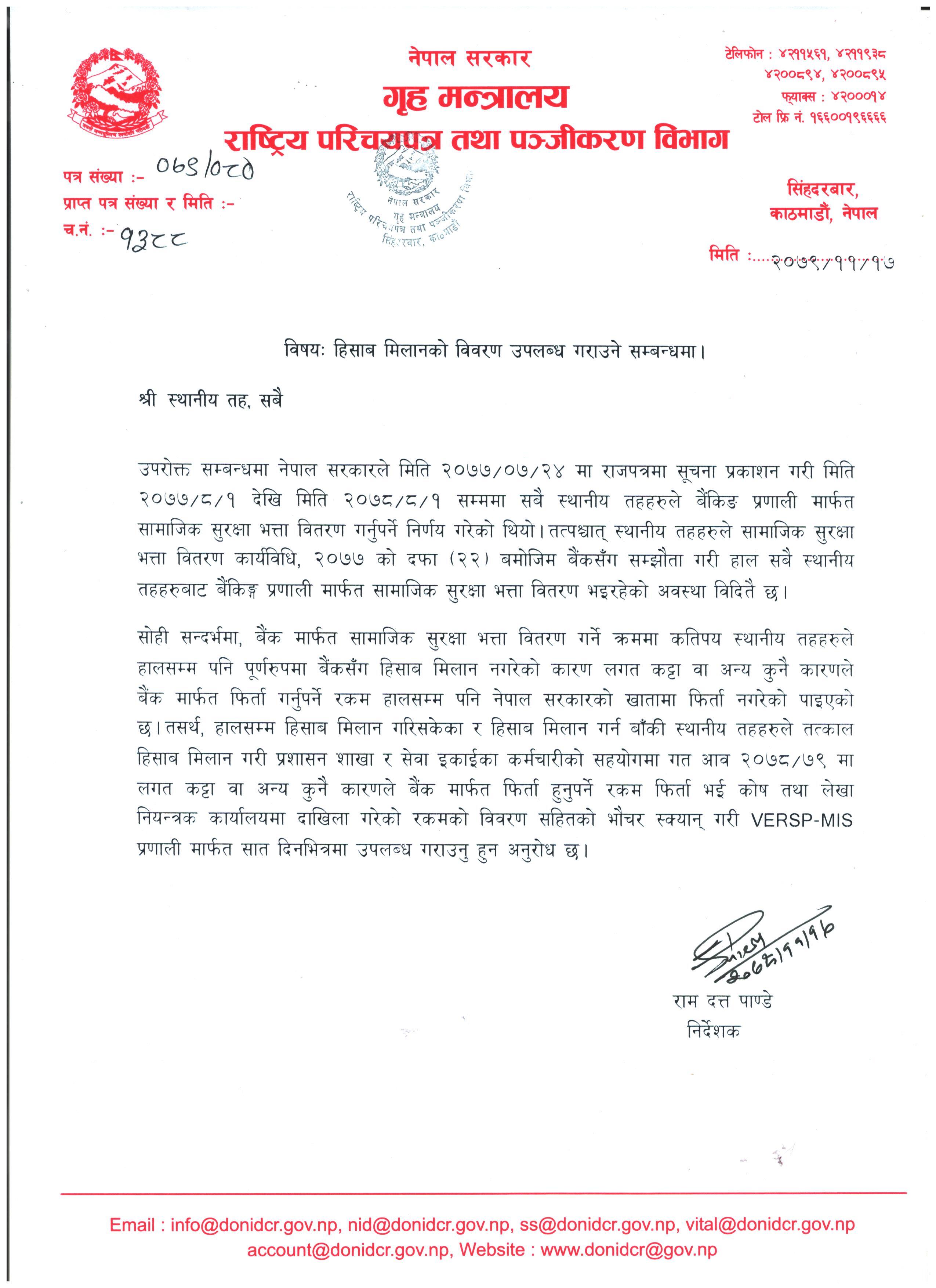 हिसाब मिलानको विवरण उपलब्ध गराउने सम्बन्धमा । |