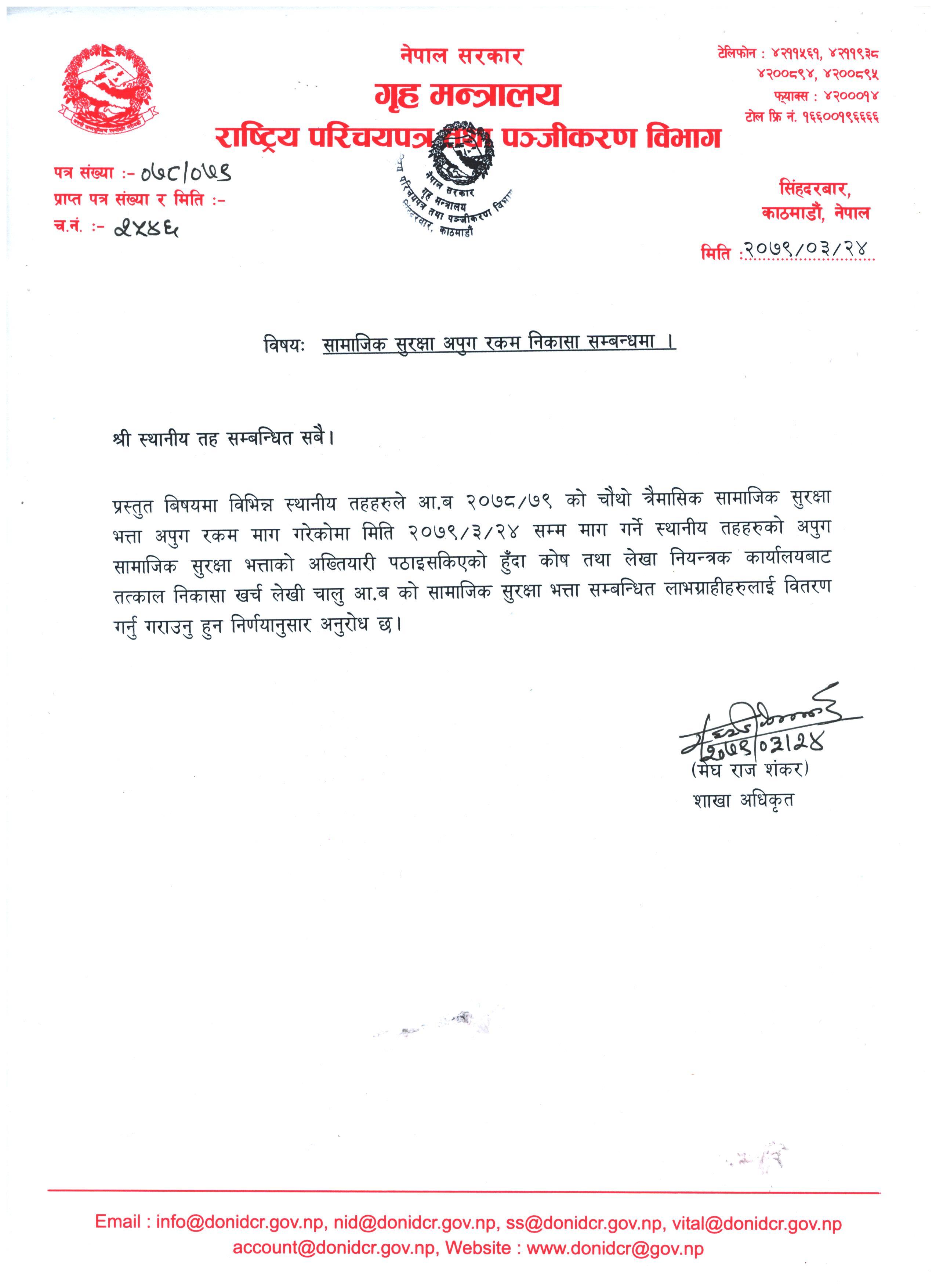 सामाजिक सुरक्षा अपुग रकम निकासा सम्बन्धमा | |