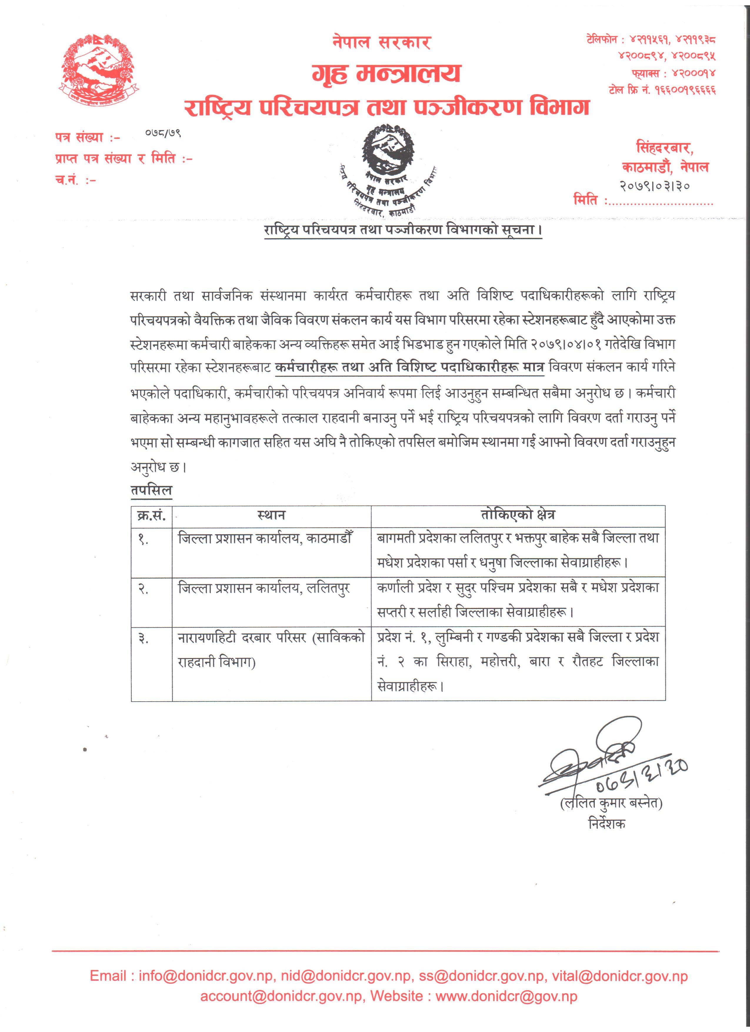 राष्ट्रिय परिचयपत्र तथा पञ्जीकरण विभागको सूचना |