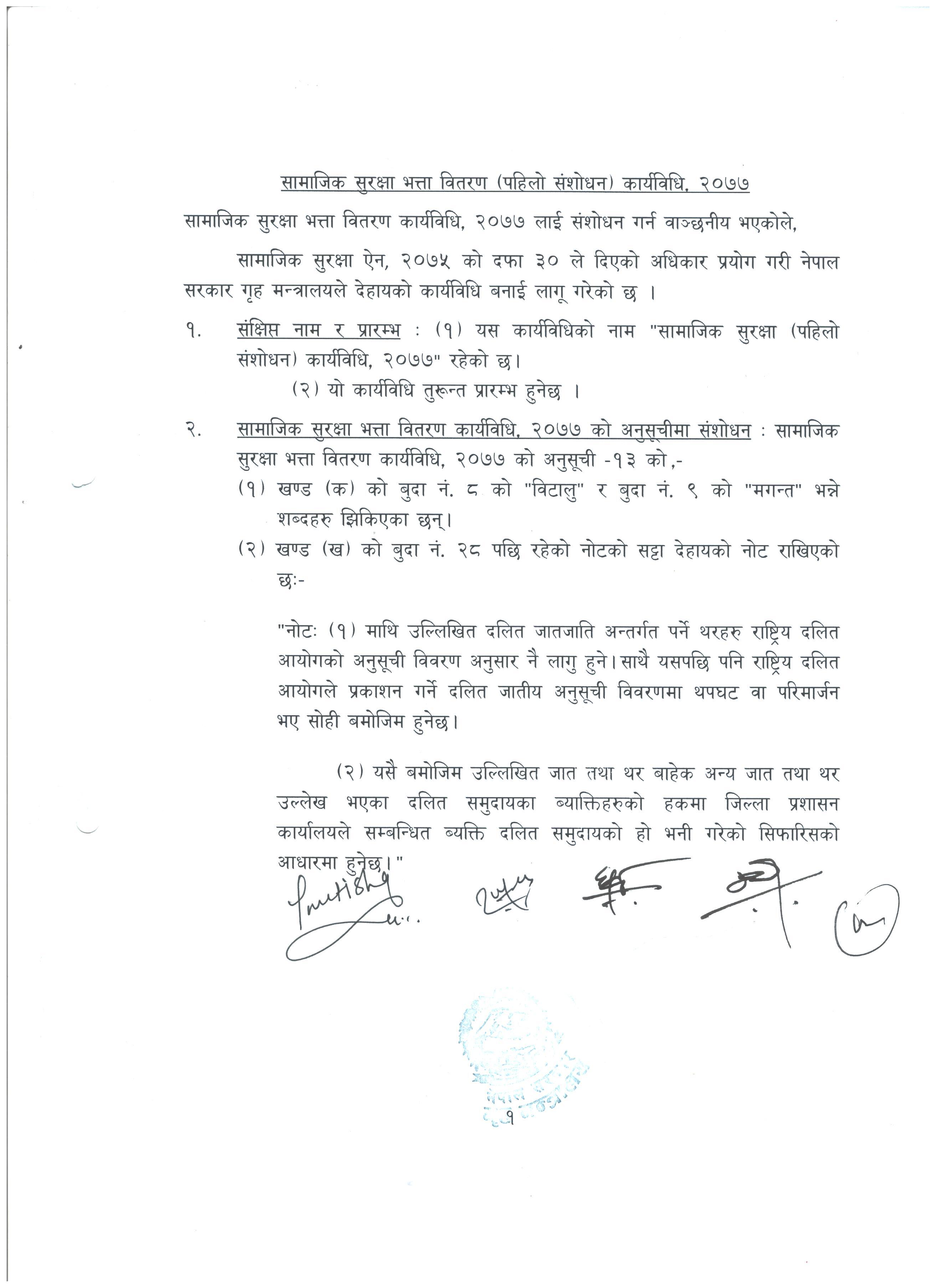 सामाजिक सुरक्षा भत्ता वितरण (पहिलो संशोधन) कार्यविधि, २०७७ |