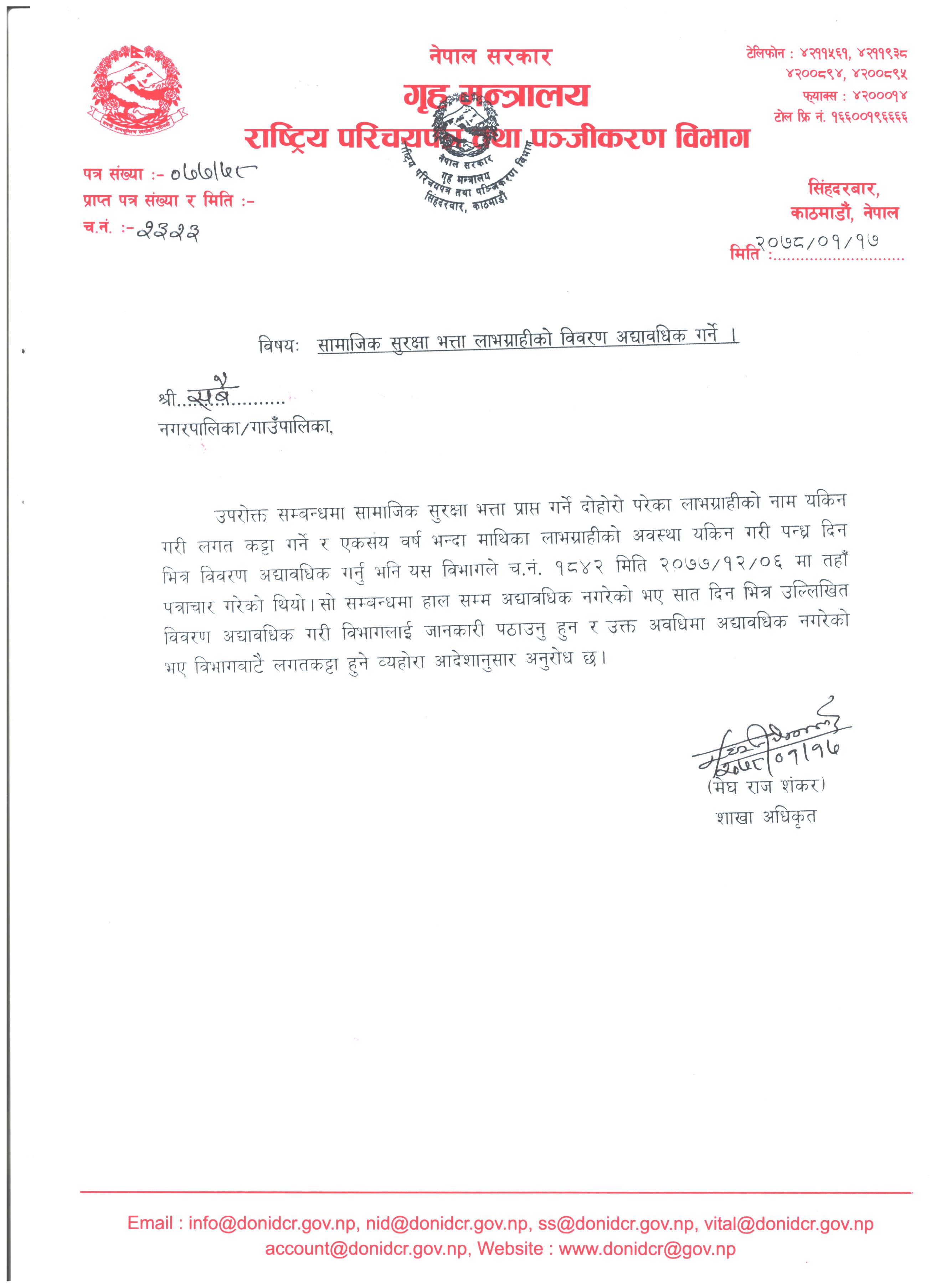सामाजिक सुरक्षा भत्ता लाभग्राहीको विवरण अध्यावधिक गर्ने | |