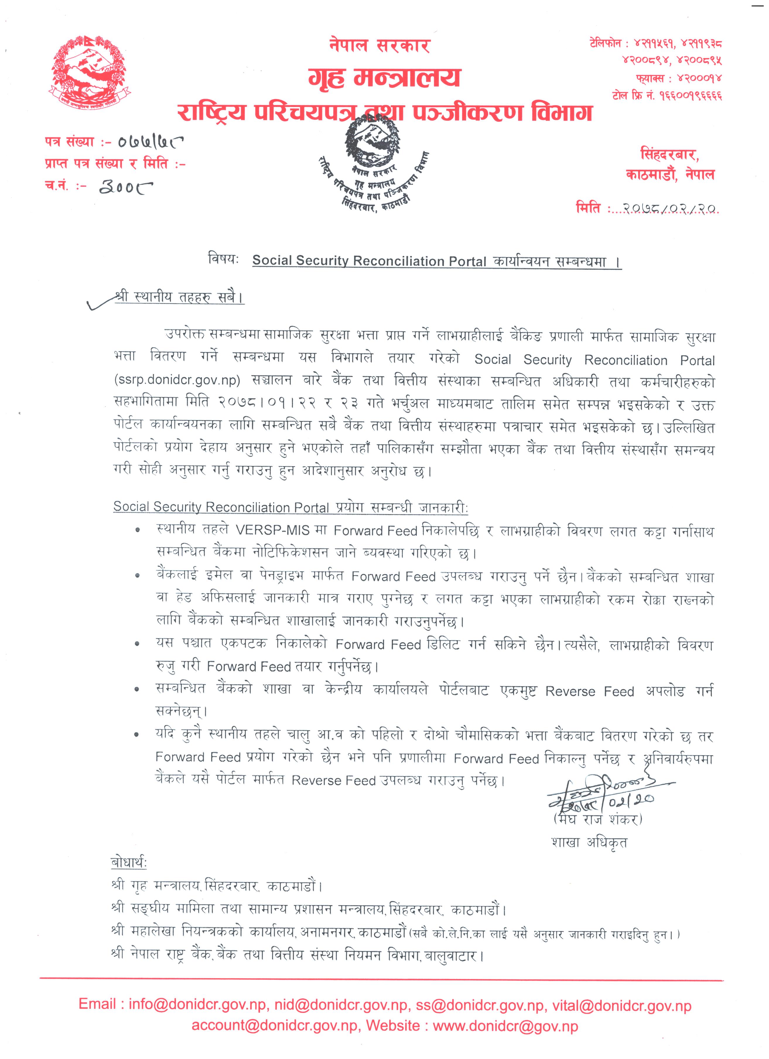 Social Security Reconciliation Portal कार्यान्वन सम्बन्धमा । |