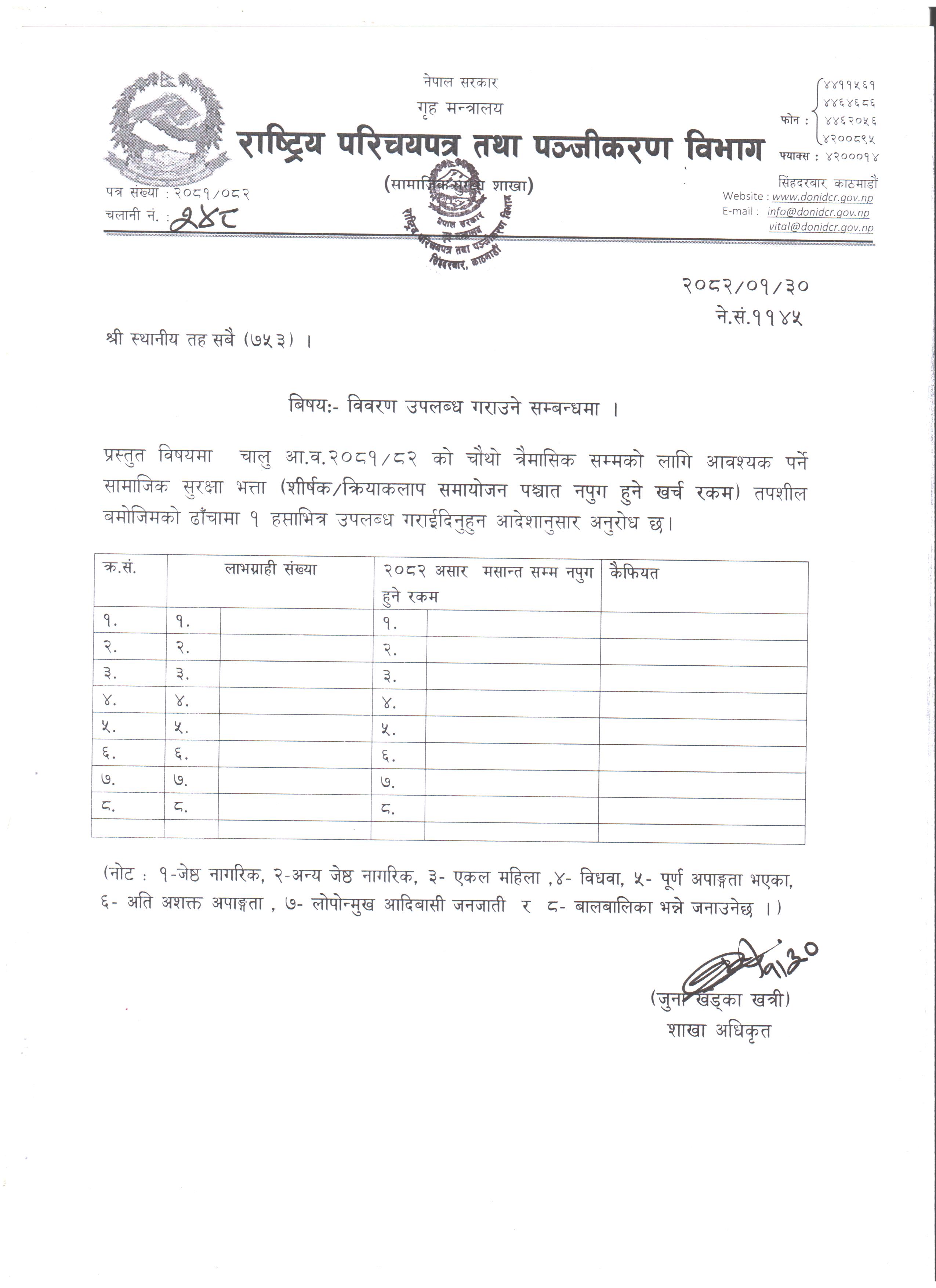 सामाजिक सुरक्षाको विवरण सम्बन्धमा |