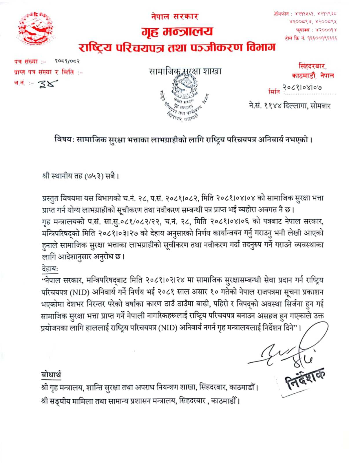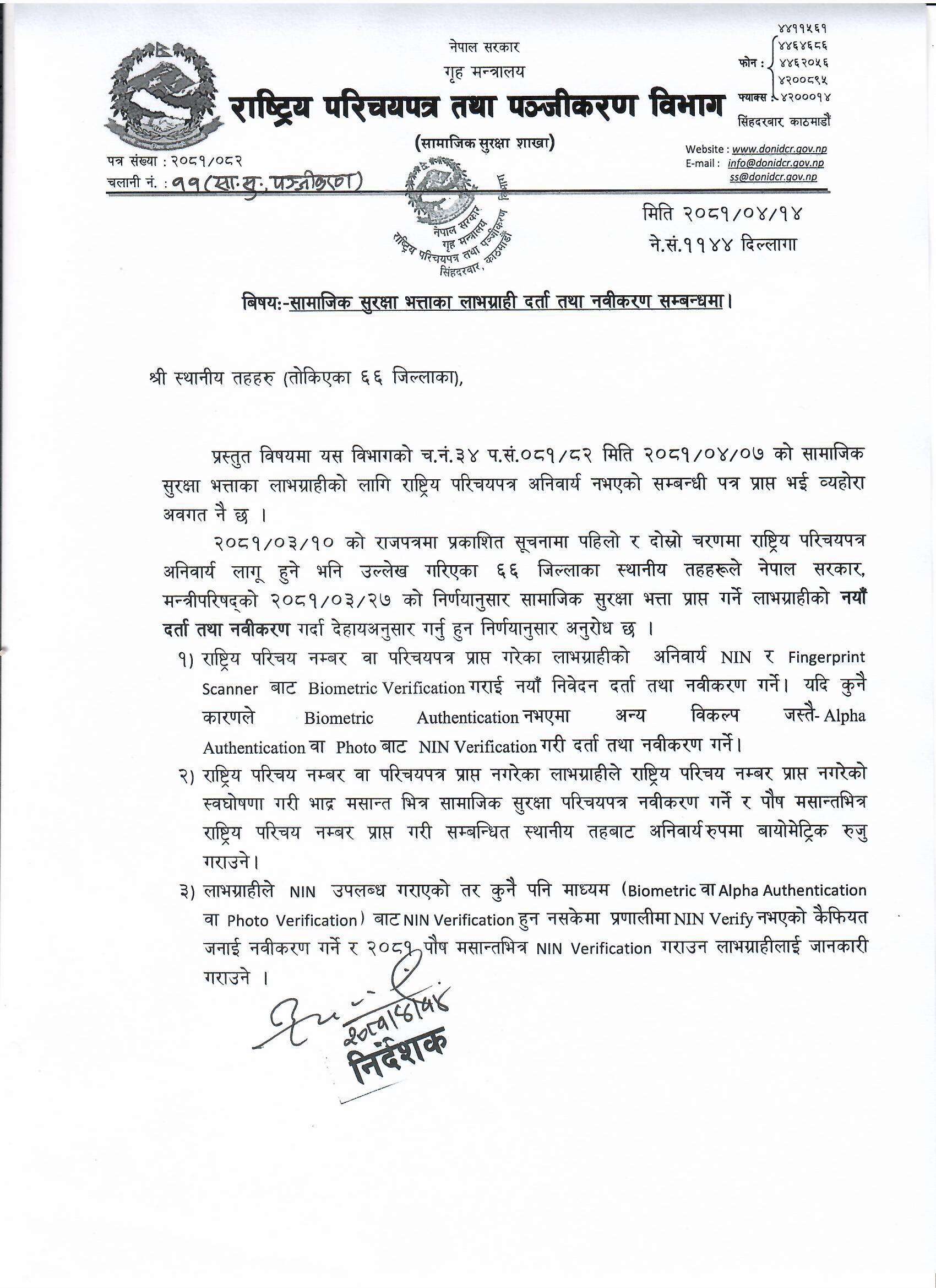 सामाजिक सुरक्षा भत्ताका लाभग्राहीको लागि राष्ट्रिय परिचयपत्र अनिवार्य नभएको |