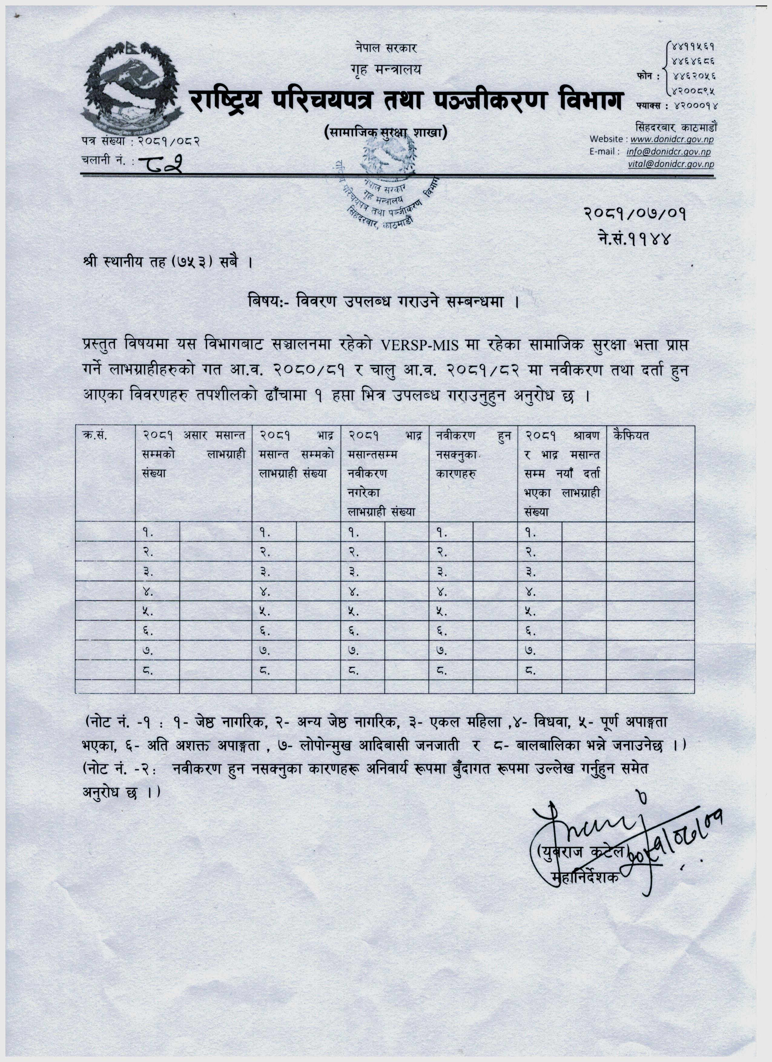 सामाजिक सुरक्षा भत्ता लाभग्राही दर्ता तथा नवीकरण सम्बन्धमा |