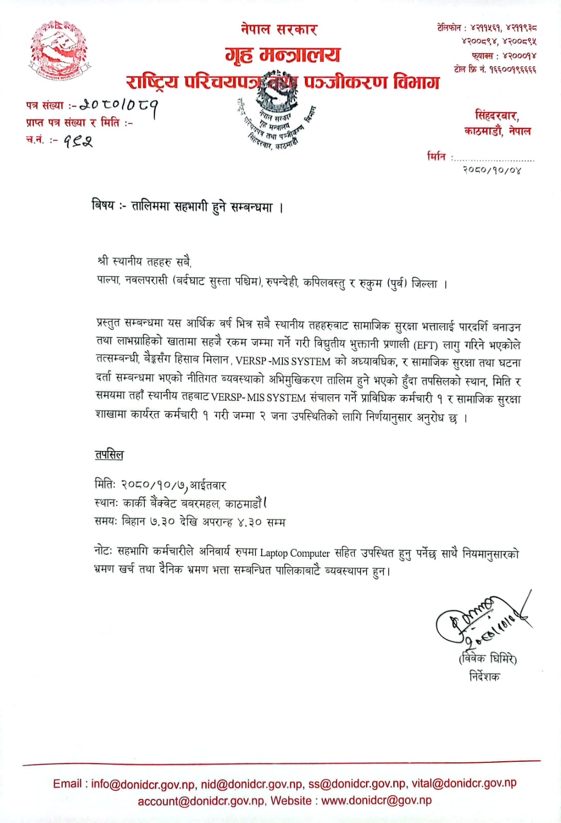 तालिममा सहभागी हुने सम्बन्धमा । |