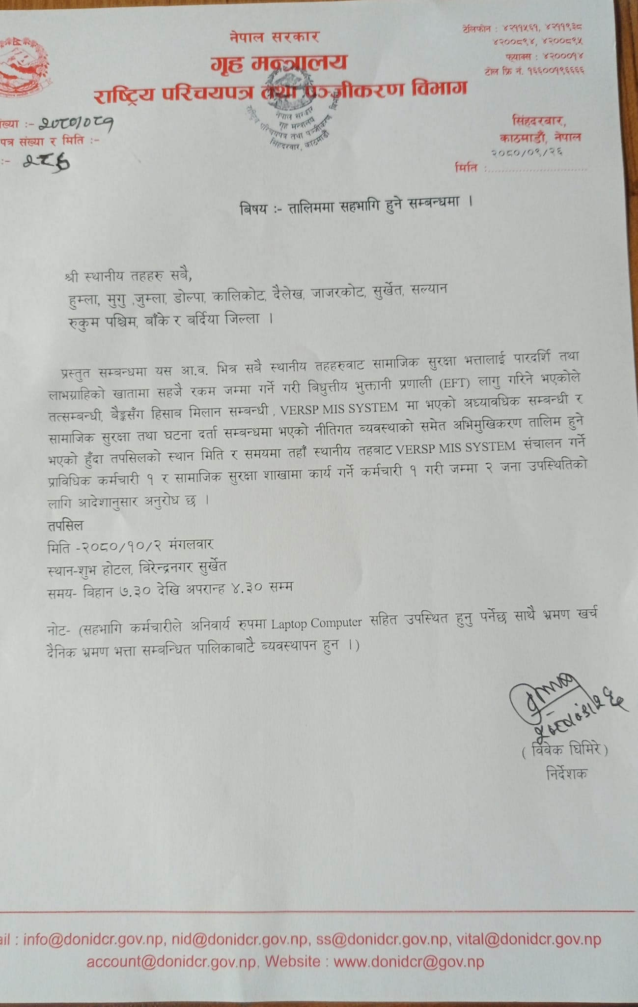 तालिममा सहभागी हुने सम्बन्धमा, बिरेन्द्रनगर, सुर्खेत |