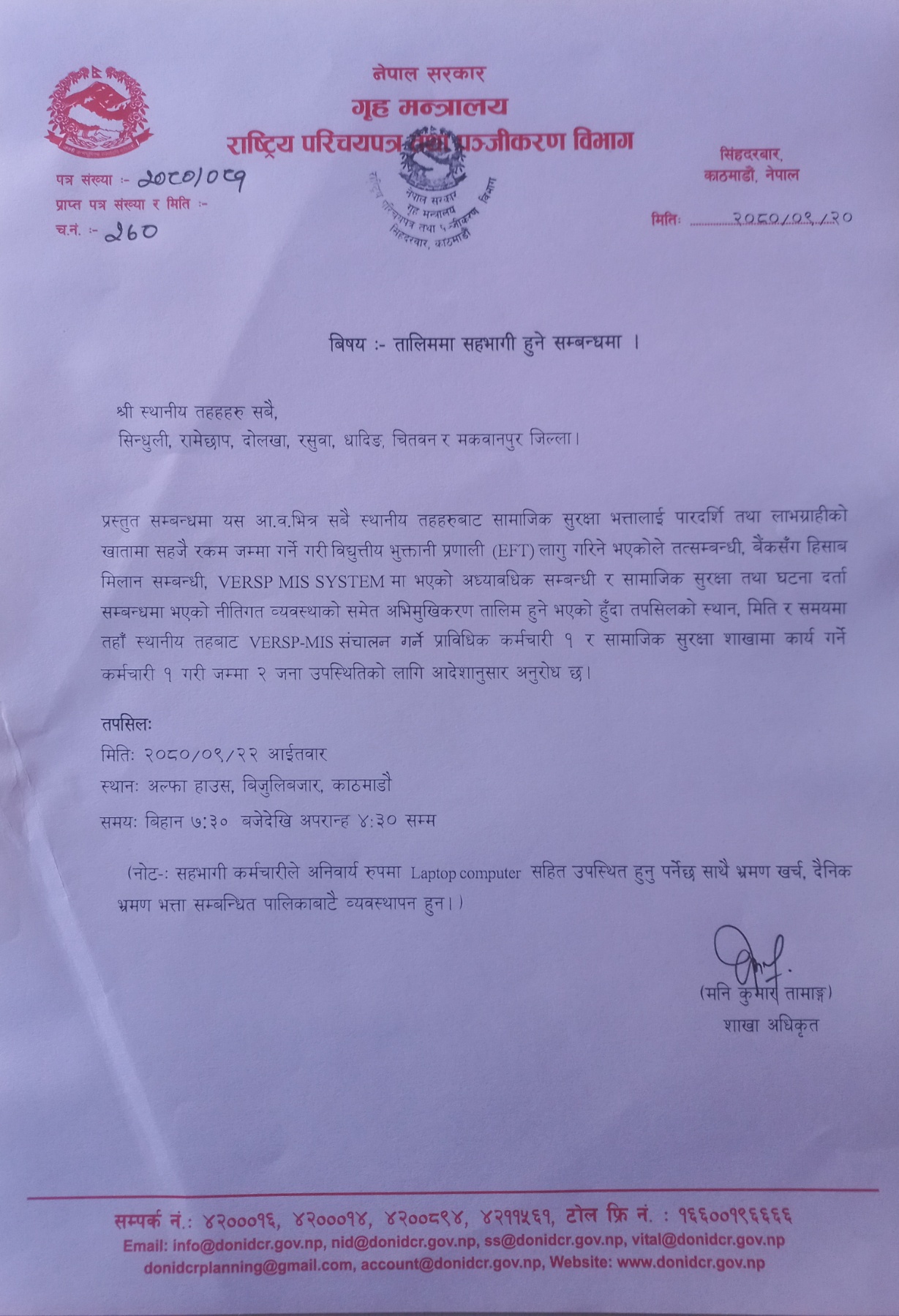 तालिममा सहभागी हुने सम्बन्धमा (बागमती प्रदेश) |