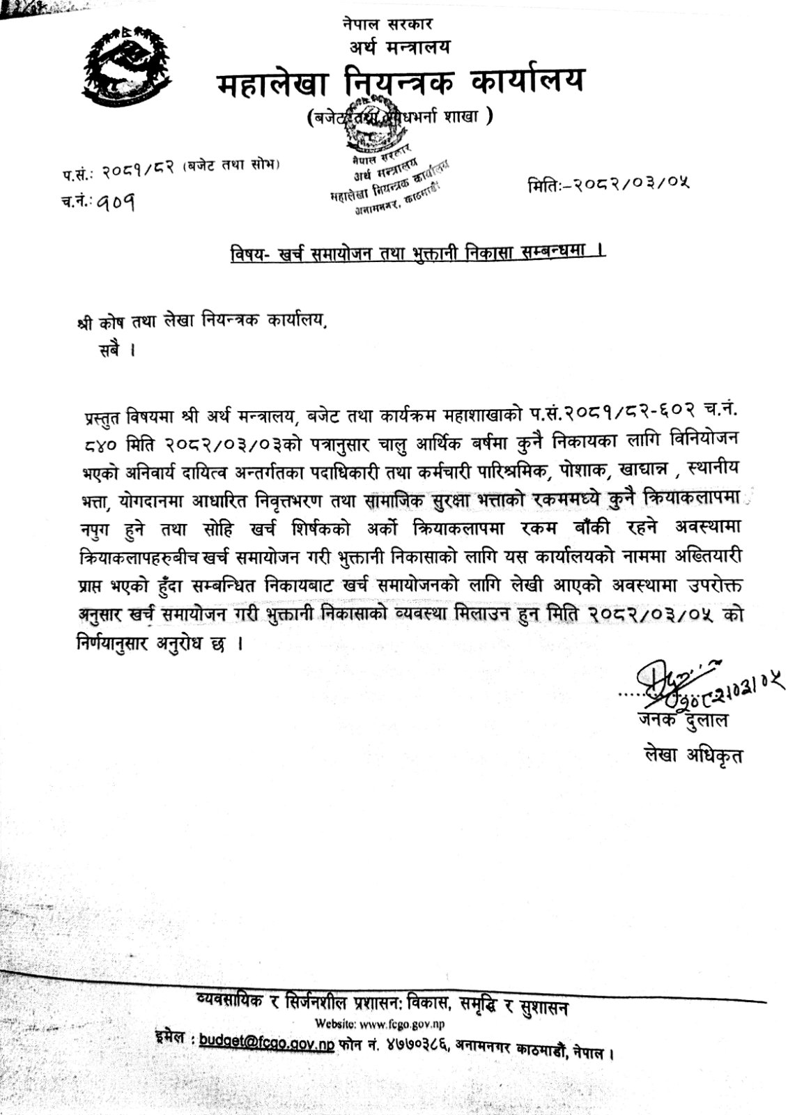 खर्च समायोजन तथा भुक्तानी निकासा सम्बन्धमा।